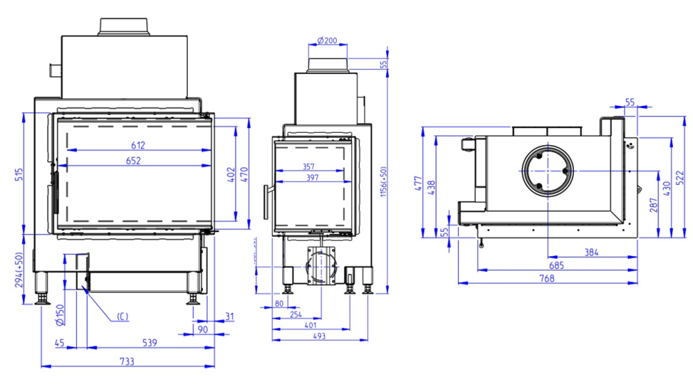 Τwo sided (right or left) energy efficient fireplace with opening door.